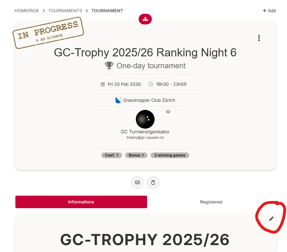 - Integration with SquashLevels: match results played in Switzerland are now automatically transmitted every night