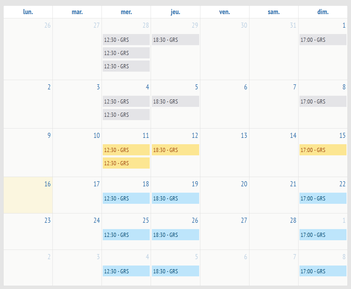 - Past training sessions remain visible in the calendar (displayed in grey)