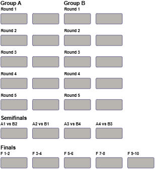 - New draw format 2R+SF+F (Double Round + Semi-finals + Final): two round robin groups followed by semi-finals and a final